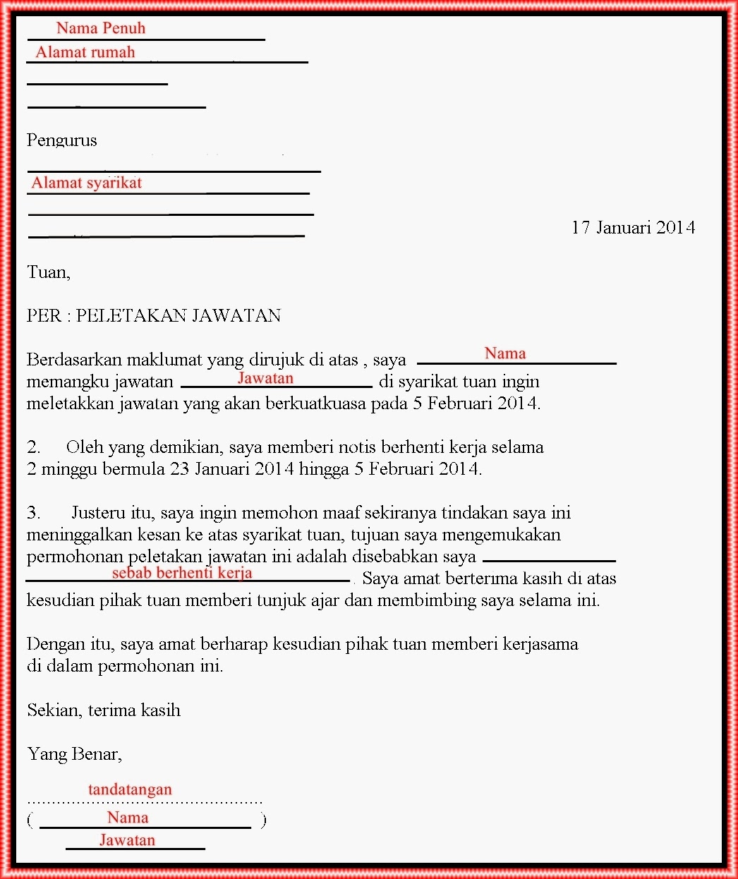 Contoh surat sokongan majikan yang menyokong tawaran belajar (admin tidak bertanggungjawab atas sebarang kesilapan atau kesalahan ejaan atau tatabahasa. Ianya hendaklah ditulis secara rasmi mengikut format tertentu bagi memudahkan bahagian sumber manusia atau majikan membuat persediaan selanjutnya. 3 contoh surat berhenti kerja sebulan & format dalam bahasa inggeris bahasa melayu dengan cara buat yang simple. Kali ini penulis ingin berkongsi contoh surat. Bagi anda yang merasa ingin berhenti dari pekerjaan sebagai penulis freelance karena ada hal lain yang.