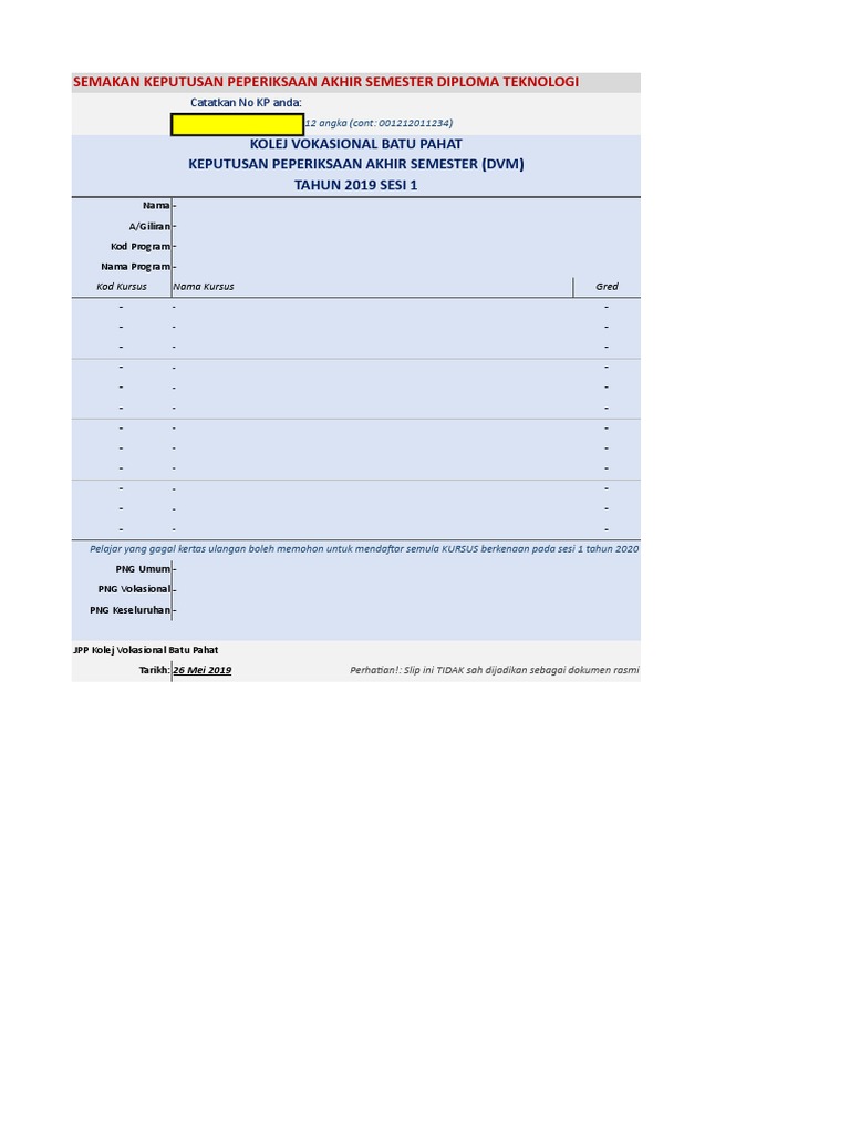 Laman web untuk menyemak keputusan permohonan ke kv dan smt 2013 adalah di semakan kemasukan ke kolej. 0 ratings0% found this document useful (0 votes). Semakan permohonan ke kolej vokasional & sekolah menengah teknik 2013 boleh dibuat dengan menggunakan angka giliran pmr atau nombor kad pengenalan pemohon. Selain semakan kolej komuniti, para pemohon dapat melakukan semakan keputusan upu bagi kemasukan pengajian ke universiti awam/politeknik premier. Pautan permohonan dan semakan keputusan permohonan ke kolej vokasional 2018.